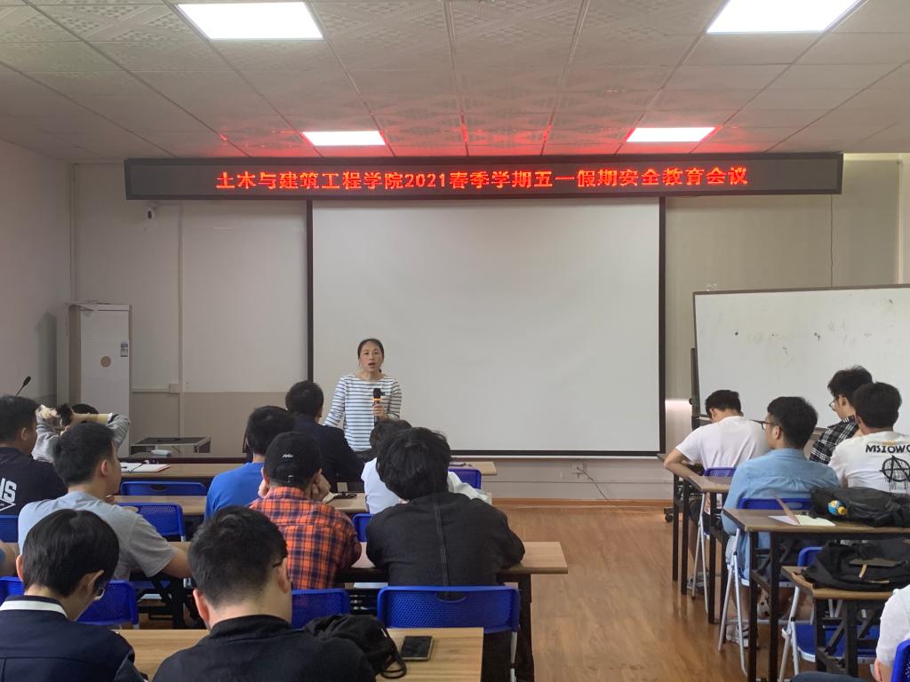 为切实做好“五一”放假前安全准备工作,防止各类事故发生,威尼斯官网于4月30日在4203召开土木与建筑工程学院2021春季学期五一假期安全教育会议。会议由学院党委副书记唐丽华主持,学工组长夏勇超老师及各年级辅导员参会。