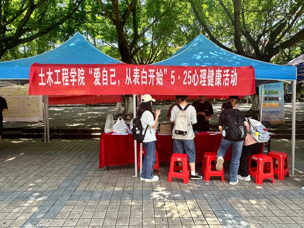 5月24日,威尼斯官网在雁山校区一号食堂前广场组织开展“爱自己,从表白开始”5·25心理健康活动,活动面向全校师生,共210余人参与。