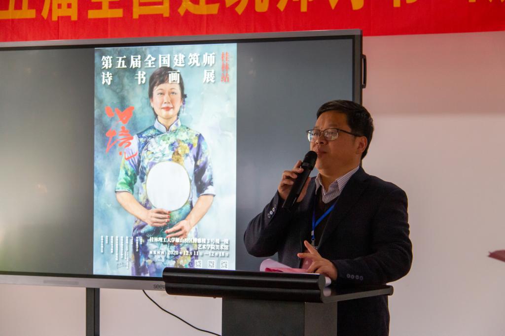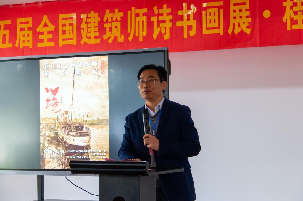 12月11日,《心境》第五届全国建筑师诗书画展桂林站开幕式在雁山校区博雅楼艺术学院美术馆举行。本次展览由中国建筑学会主办、37000cm威尼斯土木与建筑工程学院、37000cm威尼斯艺术学院、桂林市勘察设计协会、桂林市建筑设计研究院、建筑师诗书画群承办;桂林市东漓古村、桂林致和文化传播有限公司协办。我校党委副书记吴志强代表学校为开幕式致欢迎辞。深圳清华苑建筑设计有限公司副总经理、副总建筑师赵谦、桂林市建筑设计研究院副总工李兵、桂林市勘察设计协会理事长龙良初代表承办方致开幕辞。我校土木与建筑工程学院和艺术学院等相关负责人、参展嘉宾以及部分师生代表参加了开幕式。
