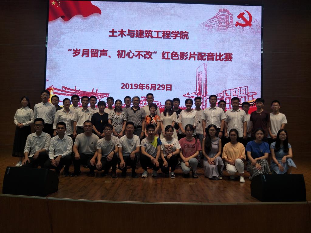 2019年6月29日上午,土木与建筑工程学院第二届党支部活动节之“岁月留声、初心不改”红色影片配音比赛于屏风校区图书馆报告厅顺利举行。学院党委书记熊英老师、党委副书记王盛老师、副院长赵军老师、副院长余文成老师、院长助理虞爱平老师出席参加了本次活动,学院全体教职工党员和学生党员参加了了本次活动。本次活动邀请了学校离退处伍开明老师、付强老师、吴莉莉老师,校团委易姗姗老师,学院金凌志老师担任专家评委。