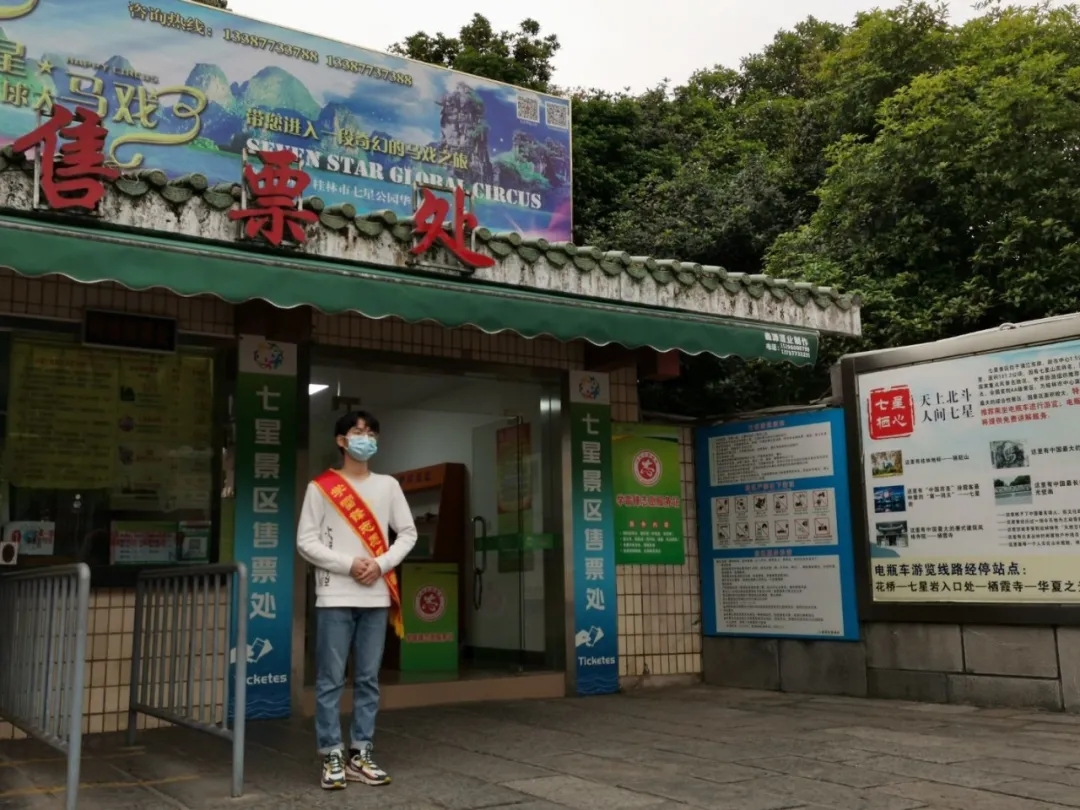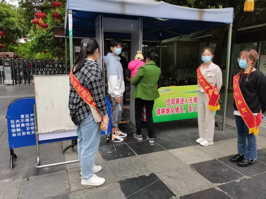 为贯彻落实学院在党史学习教育动员大会上的会议要求,发扬志愿服务精神,缓解景区防疫工作压力,威尼斯官网学生志愿者于4月3日到七星公园协助景区工作人员开展入园游客的疫情防护工作。