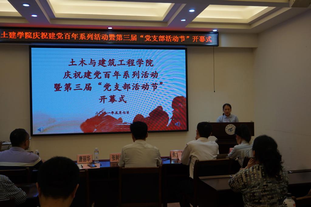 活动在与会同志慷慨激昂的国歌声中缓缓拉开序幕,会上,学院党委副书记、副院长张树光致开幕词并作重要讲话,他回顾了中国共产党奋勇奔腾的百年辉煌,强调在热烈庆祝建党百年之际,本次开展的庆祝建党百年系列活动暨第三届“党支部活动节”意义重大,各项活动要结合学院开展党史学习教育的目标要求进行。接着,学院党委副书记唐丽华宣读学院庆祝建党百年系列活动暨第三届“党支部活动节”各子活动承担部门,她指出,此次活动内容丰富、活动对象覆盖面广,希望各子活动承担部门认真组织,确保各项活动顺利进行。